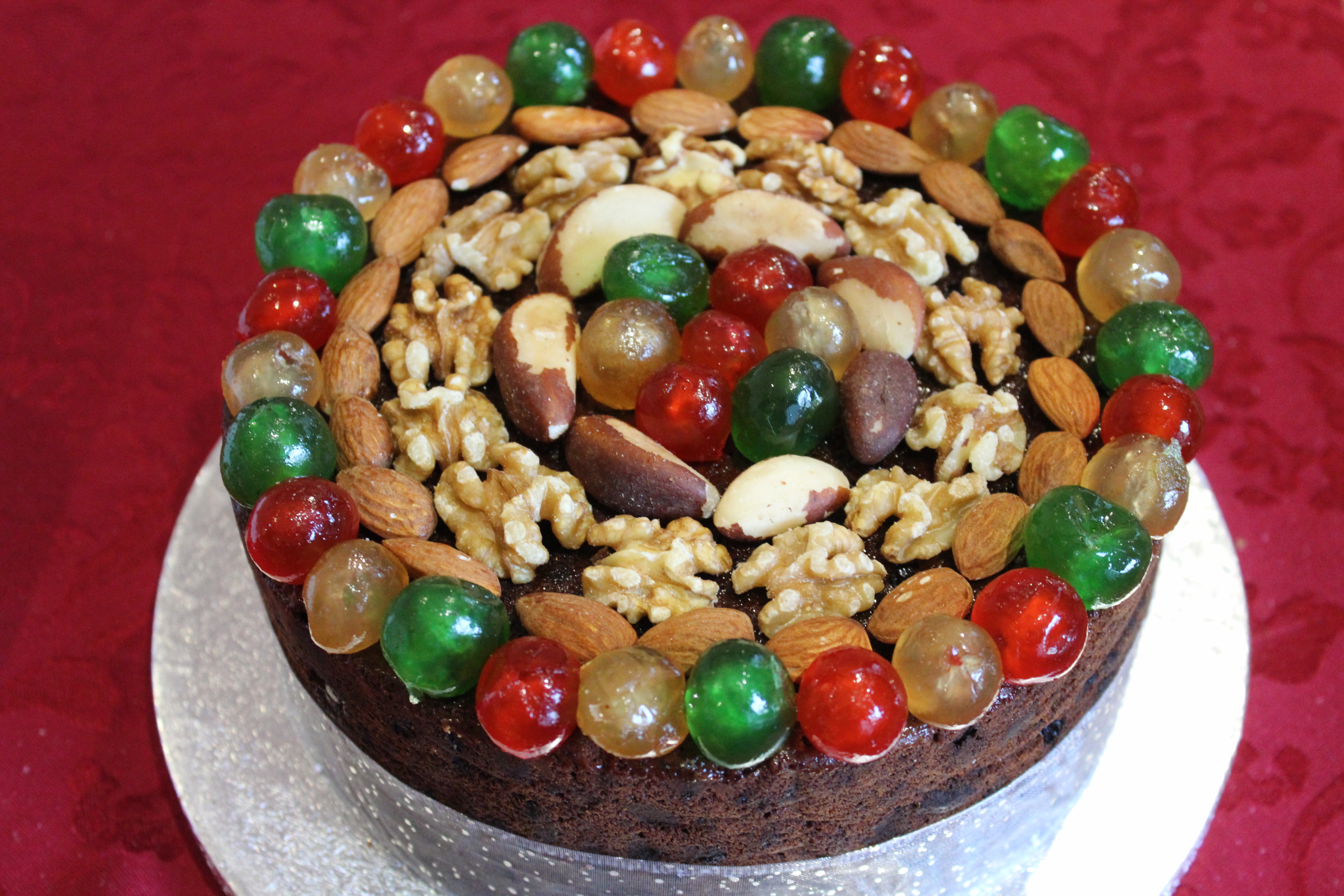 My Christmas cakes are always made by hand by me and the fruit is soaked before to infuse the fruit flavour and to make the cake succulent. Once baked the Christmas cake is then feed with more alcohol to build and enhance the fruit cake flavour and to keep the cake succulent before decorating.