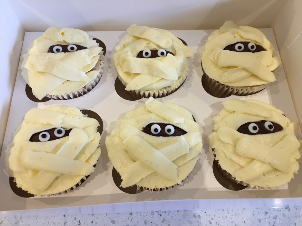 Halloween mummy themed cupcakes