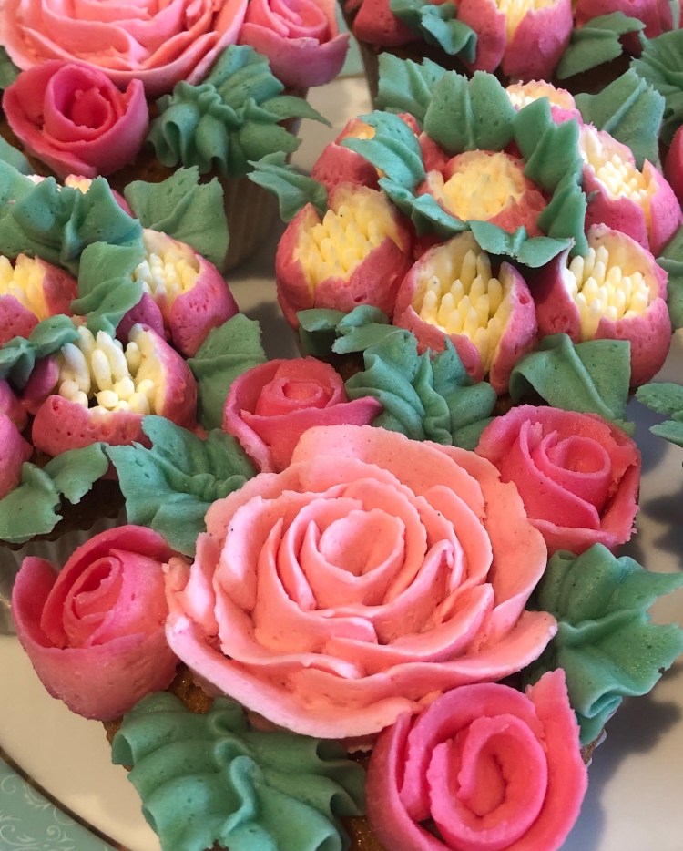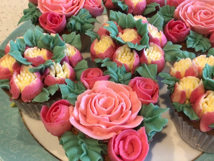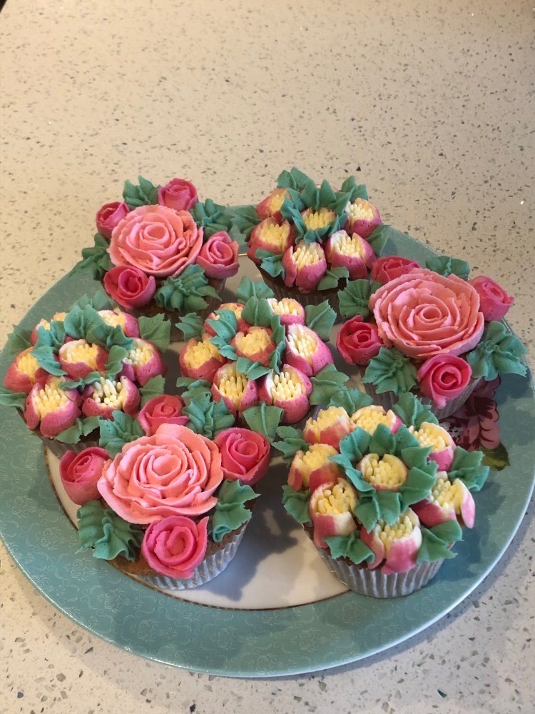 Piped floral cupcakes